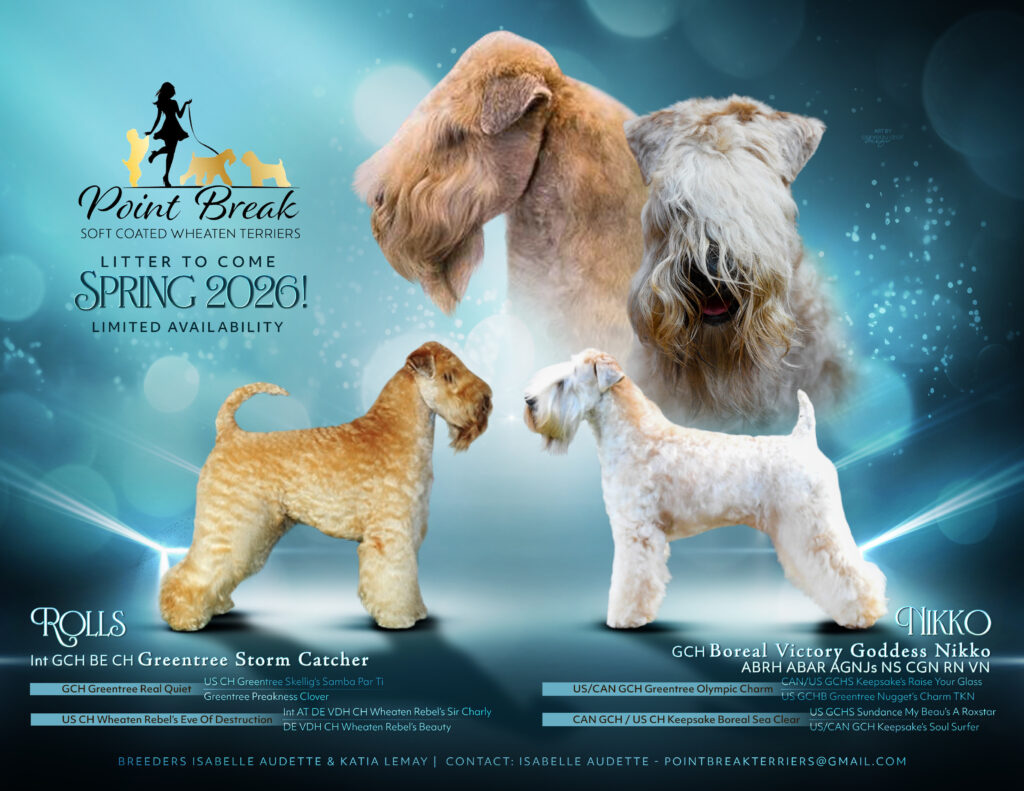Isabelle Audette (Pointbreak Wheatens) has available puppies from her litter of 12 born March 2, 2026!